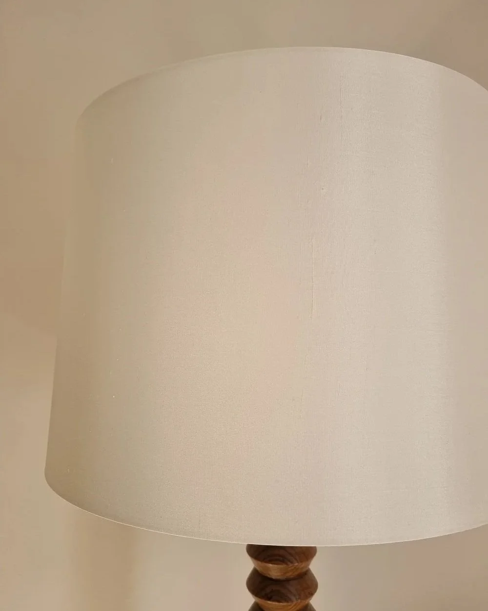 French, tall carved wooden Brutalist floor lamp with shelf platform in the manner of Charles Dudouyt, circa 1940s.